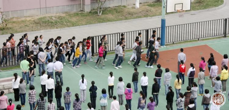 9月26日上午,体育教研室组织了四个质量领先的班级高二1、4、17、18班向全年级作进场和退场展示,意在直观地告诉全年级什么才是南区广播操的质量规范。目的全年级都在抓紧时间练习,努力达到全员规范要求。副校长沈惠祥观摩了本次展示。