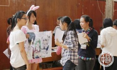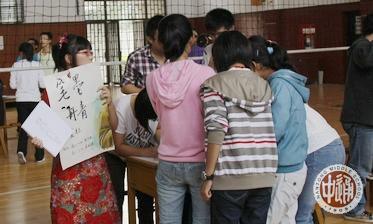 过了大约十分钟,馆内人数明显多了,很多社团摊位旁边都挤满了新生。上前询问社团的情况,学长们总是会友善、耐心地回答,让高一学生能好好享受报名的乐趣。为了吸引高一学生的兴趣,高一学长们用上了各种方法。有的社团贴出海报,高声招呼,场面十分热闹。动漫社里的女同学穿上了cosplay,吸引了众多人的眼球,给我们带来了不同的文化。街舞社也是用尽招数,还特地让团员在体育馆内表演,引来一大群学生的围观和叫好,让整个馆内的气氛达到高潮。