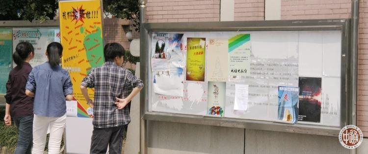 9月28日中午,每年一度的通中各学生社团招新大会在健雄馆拉开帷幕。下图是校园东大门内侧告示栏内各社团张贴的海报,本版其它各图是招新大会现场镜头,蓝色文字是高一14班李舒天来稿。招新大会后,各社团还将陆续筛选调整会员,不再集中召开招新大会。