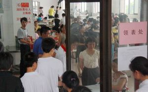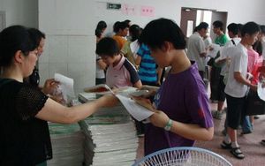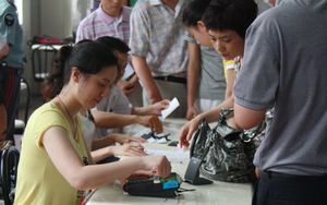 注册地点在学校食堂,流程包括填写登记表、审核、缴费等环节。因缴费标准不同,为避免差错,择校生和统招生分别在两个食堂大厅报到。从各图可以看出,多数新生能独立完成注册缴费程序,少数新生仍须由家长陪同。 |