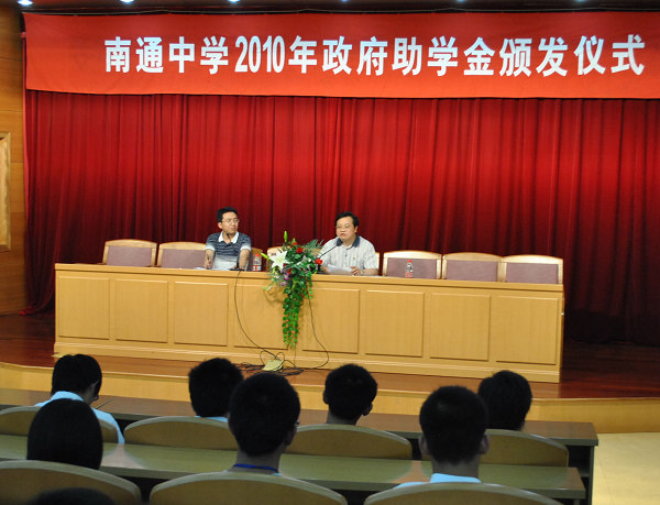 我校举行2010年政府助学金颁发仪式 来源:本站原创 发布时间:2011-04-11 14:44:53 浏览次数: 次 【字体:小 大】 7月5日下午,我校在宏观楼报告厅举行2010年政府助学金颁发仪式。仪式由学生处主任助理蓝寿军主持,校长助理沈惠祥出席仪式并向学生颁发助学金。本次颁发对象主要是高一高二年级品学兼优、家庭困难的学生,高三遴选了家庭困难、此次高考成绩优异的学生,共95人,总额为79600元。 校长助理沈惠祥在仪式上讲话,他向同学们解读了政府助学金颁发原由、条件及程序,他希望受助学生常怀“进取、向善、乐观、感恩”之心,刻苦学习、砺志成材,不辜负学校、家长、党和政府的期望,做一个人品学问同步卓越的人。 分享到: 【打印正文】