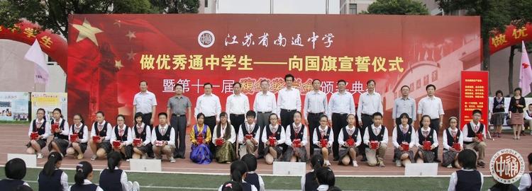 10月9日下午,我校隆重举行“做优秀通中学生——向国旗宣誓仪式暨第十一届馥华奖学金颁奖仪式”,全体高一年级新生和家长出席。