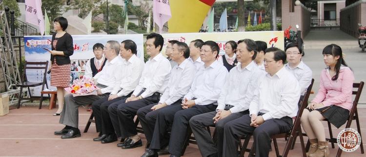 主席台前就座的有馥华奖学金创立人我校1953届著名校友李大潜院士(下图前排左一)、高一新生代表和家长代表、2011届校友代表、本届馥华奖学金获奖者以及我校领导和各部门负责人。仪式由我校团委副书记张云老师主持。