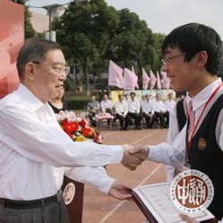 李院士亲自向获奖同学颁发奖牌和奖金(下左图)。在颁奖演说中,李院士回顾了自己在通中学习的感想和此后的人生历程,寄语同学们锲而不舍地追求真理追求理想。