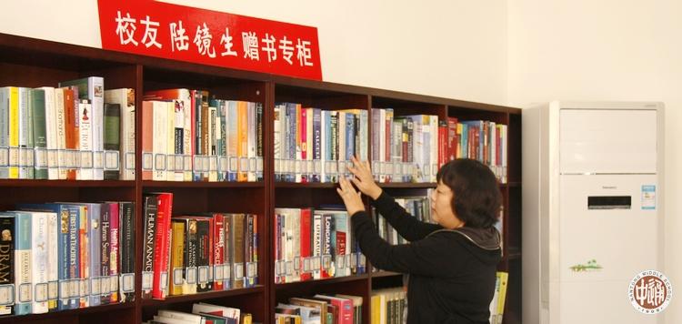 下图是本站编辑采访刘老师时她正在整理前辈校友陆镜生先生赠书专柜。