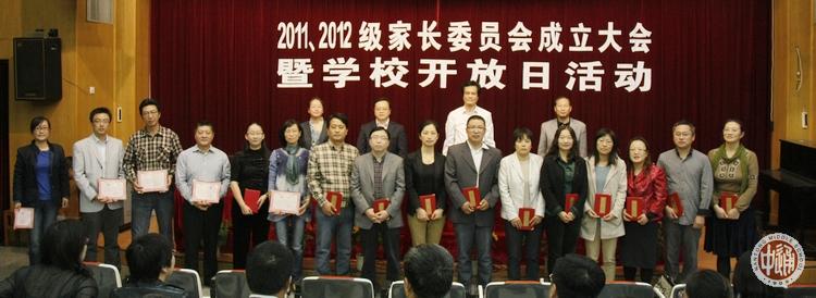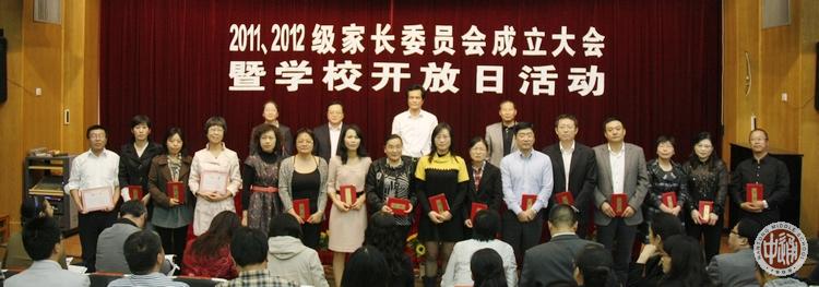 校长姚天勇、副校长沈惠祥、学生处主任杨志冲和副主任江谨共同向两个年级的家长委员会委员颁发了聘书。以下两图是受聘的家长委员会委员合影。