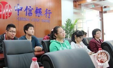 怀着收获满满的喜悦,我们离开汇羽丰公司,按计划来到参观的下一站——中信银行南通经济技术开发区支行。这是一家年轻而富含朝气的银行,支行马建春行长带领管理团队对我们的到来表示热烈欢迎,专门安排部门经理为我们讲解现代银行的基本职能、盈利模式、货币政策及未来发展趋势。据了解,中信银行南通分行入驻南通四年来,积极服务南通实体经济发展,截至今年6月,各项存款达115亿元,跨入百亿规模股份制商业银行的行列。