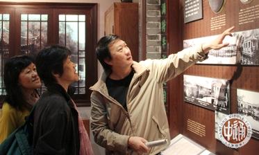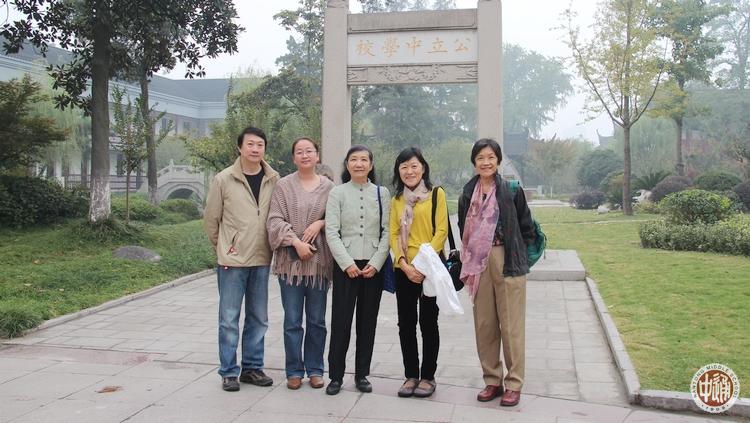 黄馥女士的女儿和侄子详细听取了校长姚天勇和党委书记韩明飞对历届获奖学生的情况介绍(上图),还前往百年校史陈列馆参观(左图)并邀请学生处江谨老师在老校门纪念碑前合影(下图,该纪念碑是黄馥女士当年在通中读书时的校门原型)。 |