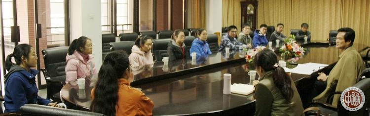 会后,教务处召开竞选学生座谈会(下图)。会上,校长姚天勇通报了学校的决定,并对每个学生的竞选演讲作了逐一点评,鼓励同学们再接再厉以优异成绩迎接各高校自主招生和全国统一高考。