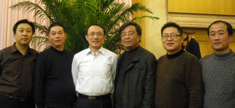 | 12月21日,江苏省第七批援疆干部人才培训班在南京中山宾馆举行,来自全省的355名援疆干部受到省领导的接见,中共江苏省委罗书记、史省长和省委组织部石部长分别与我校援疆干部姚明(中学语文特级教师,右图左)和罗志均(中学英语高级教师,右)亲切握手,省教育厅沈健厅长(下图左三)与南通市全体5名援藏干部合影时特别强调“省教育厅和南通市教育局都会做好后方保障工作”,让大家放心放手地做好教学工作。沈厅长还嘱咐我校姚老师“语文学科任务尤为艰巨重要”,同时希望南通的同志要团结好,不负众望圆满完成任务。 | ![]() |