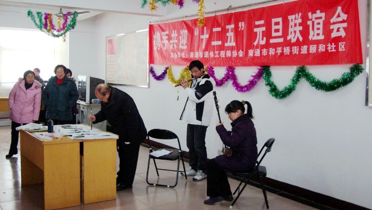 12月26日,在这即将步入2011年的日子里,高二7班和8班的部分同学与和平桥街道颐和社区的居民同台联谊,度过了一个愉快的星期日。