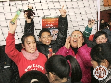 今天中午热闹非凡的义卖会上,各班都拿出自己的‘绝技’,有的充分利用排球网,将那一幅幅风靡全球的动漫‘浮’在其上,有的班则利用那五彩缤纷的自主海报,有的班则利用服装玩cosplay,再利用音乐来抓住顾客的视线,更有的班级则现场开始了展示,那一截双截棍更是舞得气势非凡。。。。。