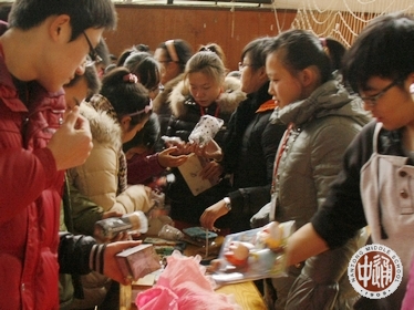 激情的义卖活动终于在我们的期待中拉开了帷幕。各班同学各展才华,进行了激烈的PK。有的玩起了COSPLAY,有的采用抽奖的促销手段,可谓各显神通。在这些活动的吸引下,场内气氛十分的热烈,每个班的摊位前都挤满了人。同学们纷纷挑选自己喜欢的物品,甚至有些精美的商品引起了激烈的拍卖。叫卖声,还价声,惊叹声,一声响成一片。据说,这从活动的筹款会用来进行慈善公益活动,或许,正因为这点原因,才会有这么多的人吧,我对此感到欣喜。