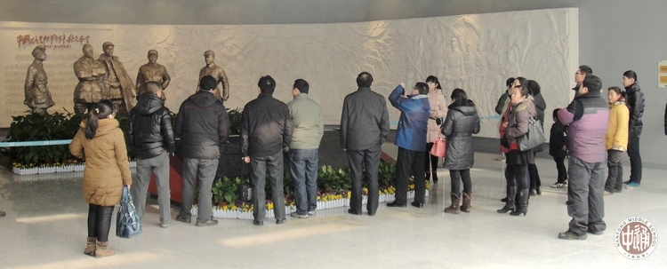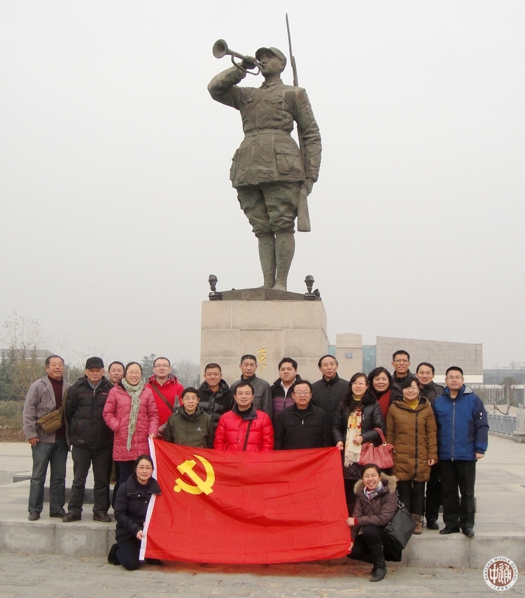 纪念馆中展示新四军浴血奋战历程的大量图片和讲解员的深情讲解对于我们深入了解我党我军发展的历史起了生动的作用。以下两图是前往参观的党员和入党积极分子在纪念馆大门前和新四军雕像前合影留念。