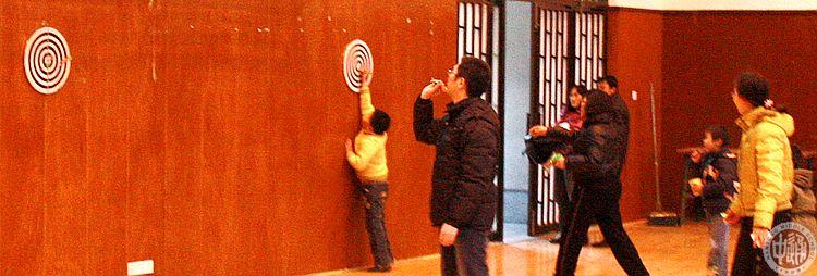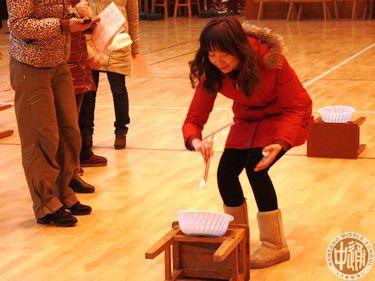 上图游戏《飞镖投准》,参与者距离靶子2.5米,每人投一镖,不允许试投,投中10环得一等奖,投中9环得二等奖,投中8环得三等奖。下图游戏《套圈》,主持人准备好6个圈,游戏者每人拿3个圈,离物体3米,把圈套上去,套中的物品作为奖品。