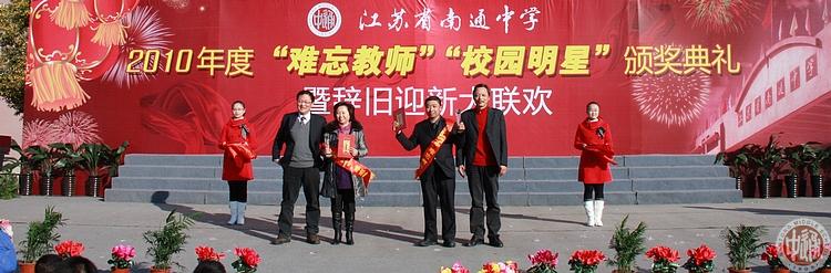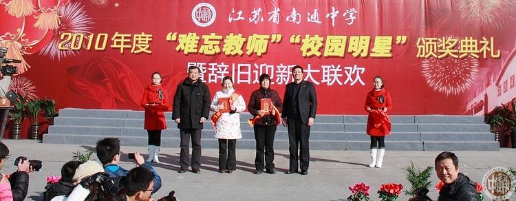 为姚明老师和卞秀凤老师颁奖的是南通市教育局党组成员政治处主任葛苏强老师(上图前排左一)和我校副校长刘忠保老师(右一)。
