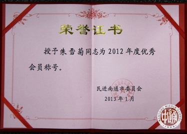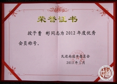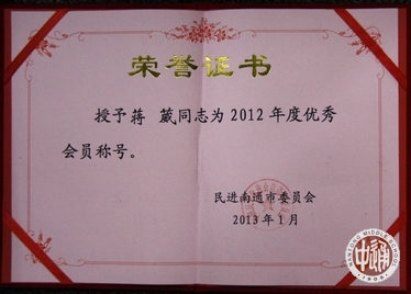 | 会上,曹彬老师作了2012年工作总结报告。过去一年丰富而有意义的活动得到了民进市委和会员们的高度肯定,通中支部被评为2012年度先进基层组织。袁晓霞老师宣读了2013年工作计划,会员们展开了积极的讨论,表示支持并将积极参与各项活动。顾军老师表彰了2012年度优秀会务干部和优秀会员,颁发了市委会的表彰证书。 | ![]() |