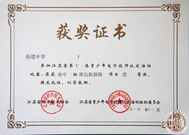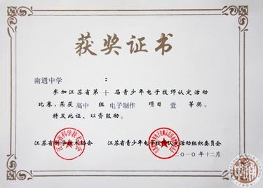 2010年11月28日在张家港二中举行的江苏省第十届青少年电子技师应用电子技术比赛中,我校获得了优异成绩。 本次比赛分三个赛区,张家港赛区高中组共有10所学校161人参加。我校共有20名同学分别参加电子制作旋转灯焊接和电子控制电路面包板插接比赛,分别获得壹等奖10 名、贰等奖7 名、叁等奖3 名。我校荣获高中组面包板插接项目集体壹等奖和高中组电子制作项目集体壹等奖,并被评为江苏省青少年电子技师认定活动二0一0年先进单位。黄金如、汪宏根被评为江苏省优秀指导教师奖。 |