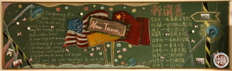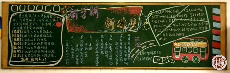 下面这幅是高三18班的黑板报。该班是国际课程班,学生毕业后跟国内高考无关,从去年底开始大家就陆续收到国外各高校的录取通知书,今年3月底之前应该全部能够落实就读高校。今年5月大家还要参加美国AP课程考试,然后就毕业离校了。黑板报右边好消息栏目记录的是本班学生已经录取学校的清单。