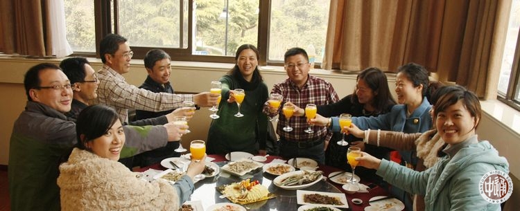 3月8日是国际劳动妇女节(International Working Women's Day)。当天中午,我校高一年级语文备课组男教师特地在学校小食堂安排了简朴温馨的小宴席,宴请本组全体女教师,同时为本组女教师蔡静静贺生日。因下午要上班,宴席以橙汁代酒。下图大家对汁当歌,其乐融融。