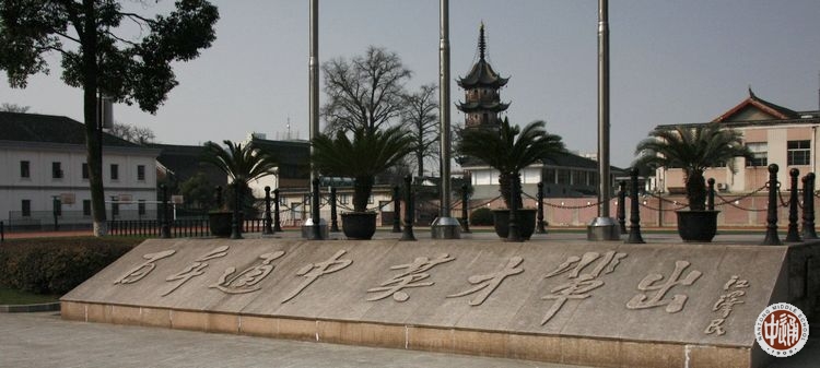 以下纪念碑上刻写的是2008年原国家主席江泽民的亲笔题字:百年通中英才辈出。