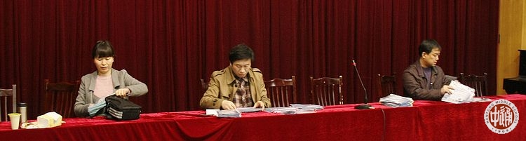 上午和下午的考试之间有2小时间隔,送考的老师担心考生午饭时不小心把准考证搞丢了惹出大麻烦,索性一律将准考证收回保管,下午再发给考生。下图我校的三位送考老师正在清点收回的准考证。