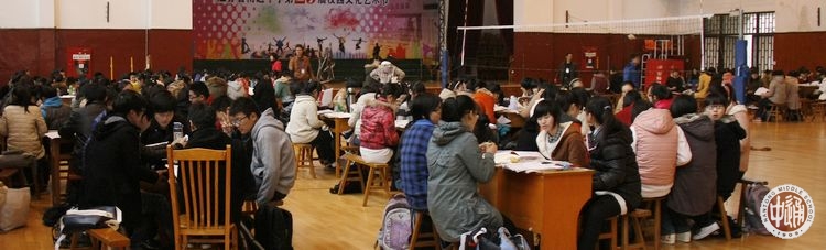 上午的化学考试时间是10:45-12:00。考生提前40分钟可以进入考点,在我校考点事先安排好的休息场所休息。以下各图分别是科学楼报告厅、乒乓球室和健雄馆等处考前休息的考生。
