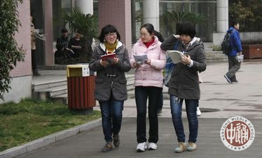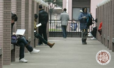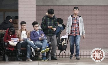 以下组图中的考生散落在校园各处,或独自复习,或三三两两讨论。