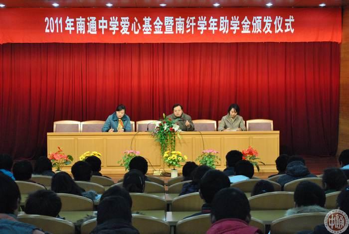 1月17日下午,我校爱心基金暨“南纤奖”学年助学金颁发仪式在宏观楼报告厅举行,南通地税局“春风行动”助学捐资活动再将春风吹进通中校园。