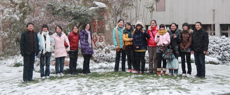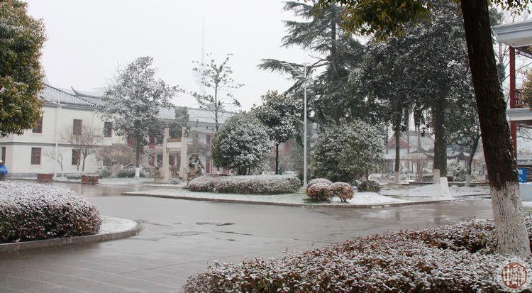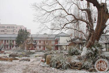 今天是2011年元月18日,农历腊月十五,冬至起四九第一天,南通下起了今冬第一场雪。雪不大,天气预报的气温是摄氏-2度到2度,不是很冷,花圃里的雪能留住,但路面上的雪很快就化了。中午时分,数学学科田玉龙老师QQ上留言,说荷塘水面积雪一片白(右上图),建议校园网新闻编辑部赶紧拍摄校园雪景,把这个时刻的景象留住,遂有本篇报道。 |