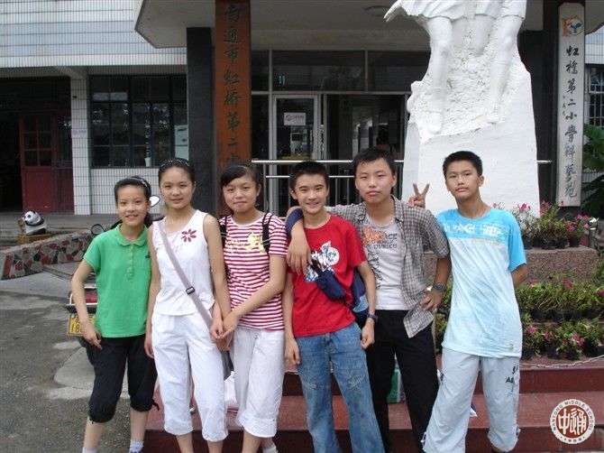 转眼10岁生日(左图)。那时,我已经能够长时间地酝酿理想思考人生了,闲暇时则和小动物们打成一片。领居家的小狗和我一起从小玩到大,前几天生病死了,我为此伤心了好几天,再也听不见那熟悉的狗狗叫声了。后来我小学毕业了,和几个最要好的同学在母校门口留了一张合影(下图)。面对人生第一次离别,我们局促不堪,似懂非懂地接受了毕业这个事实,第一次体会到了不舍的无奈。我们去了不同的初中,但我们约定要一起上通中。后来,哈哈,还真的实现了。 |