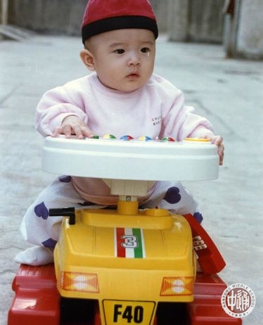 又过了几个月,我学会坐在学步车上(右图)。这个小红圆帽很有中国传统的样子,可我还是一脸迷了路的表情,直到后来长大了,我还是没有丢掉从小培养起来的这个“好习惯”啊。 |
