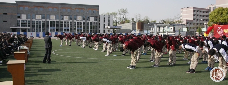 广播里播放起一位同学写给父母的信:想着平日里你们对我的好,泪水不知什么时候,就模糊了眼睛。......请允许我说一声“爸爸妈妈,我爱你们!永远都爱!”全场同学回过身,向亲爱的父母深深鞠躬。