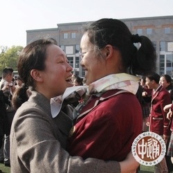 情不自禁的爸爸妈妈们奔上前来,为孩子们佩戴成人纪念的丝巾,与孩子紧紧拥抱;同学们也把准备好的一封封家书亲手递给自己的爸爸妈妈。
