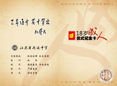 今天是你们成长历程中的重要日子,十八岁成人仪式在通中菁菁校园里隆重举行,你们的父母、老师、亲友和关心着你的人们都纷纷来到你们身旁,深情地注视着你,见证着这一神圣时刻。从此,你们告别了稚嫩的年华,融入了共和国强大的公民队伍,成长为一名享有法定权利和义务的独立的人!在此,我代表江苏省南通中学,对你们的健康成长和走向成熟,致以由衷的祝贺!