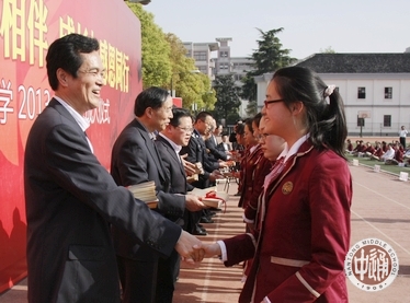 4月15日下午,2013届高三年级成人仪式在校本部操场举行,本年级全体师生和学校各部门负责人出席,全体家长到场见证,交巡警支队一大队民警代表是本次成人仪式特邀嘉宾。本次活动作为2013年教育局团委示范活动,还邀请了市三中、西藏民中等校的团委老师前来观摩学习。
