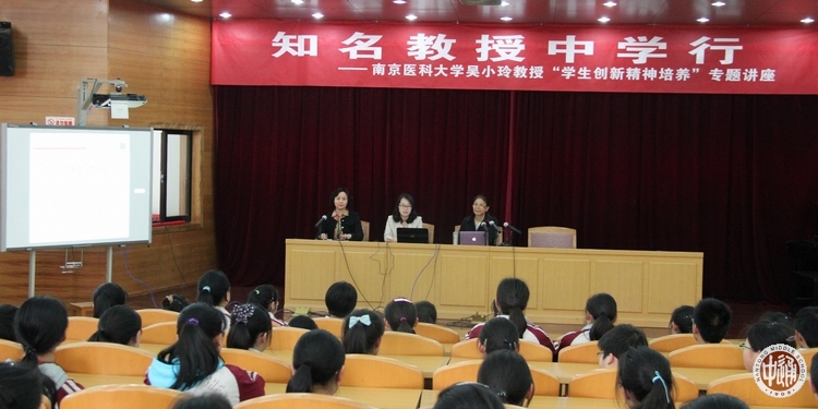 4月16日下午,在我校举办的“知名教授中学行”活动中,南京医科大学吴小玲教授给高一同学作了题为“学生创新精神培养”专题讲座。