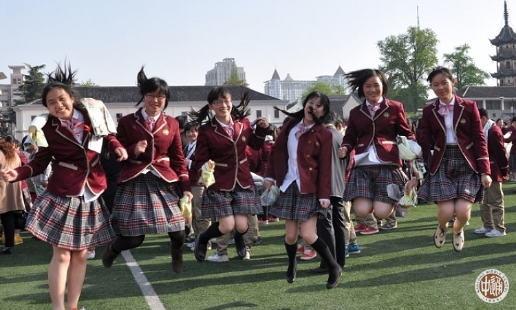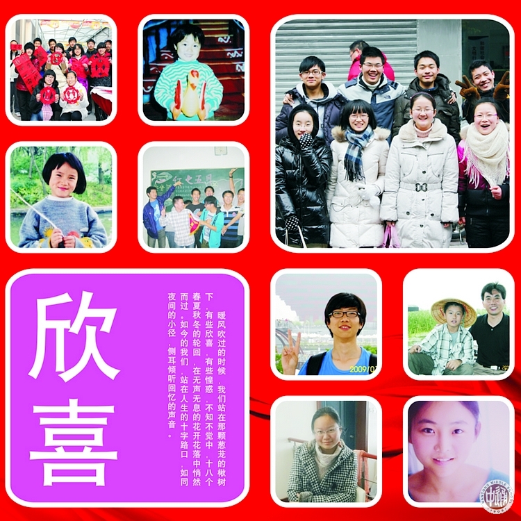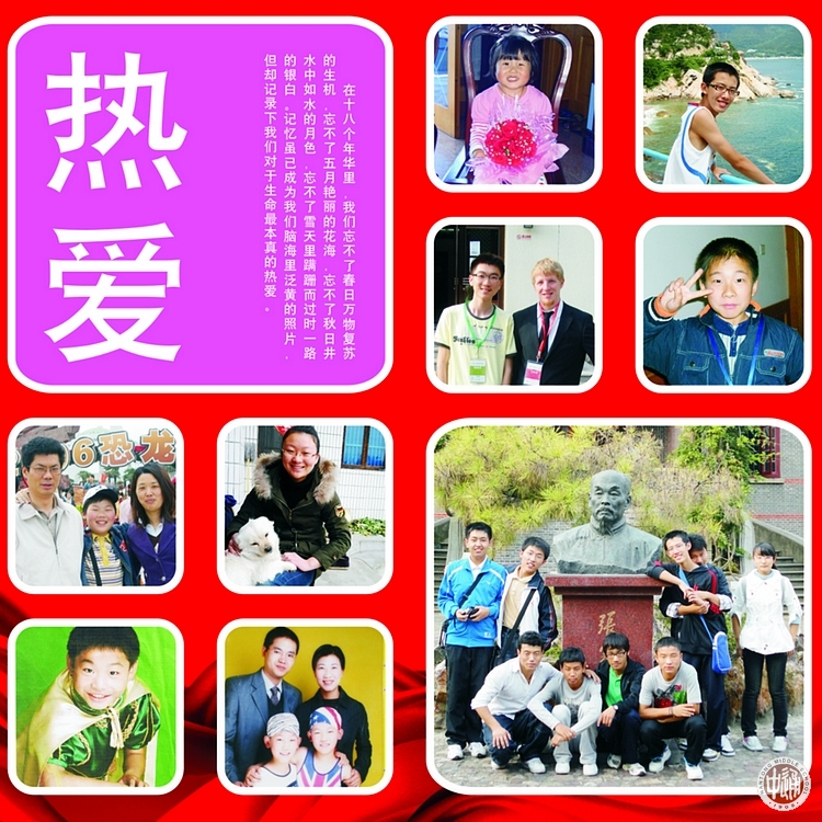 上图是成人仪式结束时我校首届AP班学生欢快跳跃的镜头。成人仪式广场周边围绕的二十个“快乐成长”组图,以下是其中的小部分,本网站后续报道还将陆续展示。