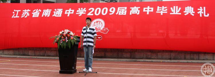 下图是我校2009届高中毕业典礼上王隽永同学代表全体毕业生向母校致谢的镜头。