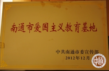 去年12月,中共南通市委宣传部确定我校为“南通市爱国主义教育基地”,并于近日向我校颁发基地铭牌(下左图)。关于我校的相关介绍文章收录在中共南通市委宣传部编撰的《南通市爱国主义教育基地巡礼》一书(下右图)中。
