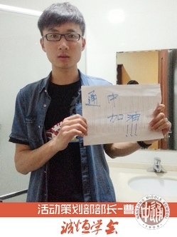 今年2月,正在上海对外贸易大学读大一的通中2012届毕业生许强文发起成立了由通中校友组成的“诚恒学会” (会标见上图),目前已有高校在读的通中校友一百余名会员。近日,该学会开展“为通中学生高考加油”活动,由会员们用手机拍摄自己手持“通中加油”标牌的照片发到本网站,每一幅照片都饱含校友对母校的无比深情和对学弟学妹的热切祝福。 |