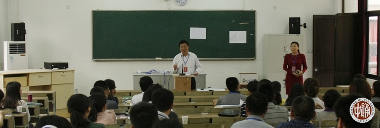 下午3点,全体监考员在主考室接受我校副校长、考点副主任刘忠保关于考生和试卷管理细则的进一步具体辅导。