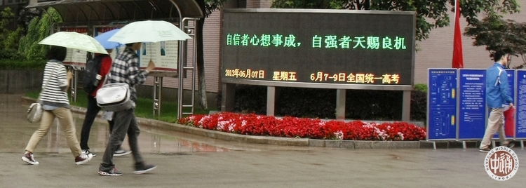 走进考点,迎面电子屏上显示的标语令人振奋:自信者心想事成,自强者天赐良机。