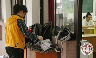 本来安排考生8点20进考点,今晨因雨临时作了调整,考生7点半就陆续进来,先到休息室休息,免得淋雨影响情绪。