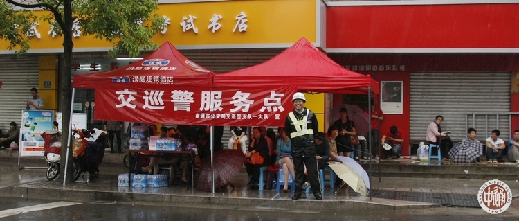 每年高考,交巡警的服务点总是考点外的一道风景。