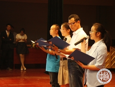 主持词:六月,它是一个让所有考生既爱又恨的词语,有时候你觉得它比初恋更痛,有时候,你又诚惶诚恐,忍不住要亲吻它的脚尖,它将是你一辈子难以忘怀的记忆。让我们有请高三最帅的薛德荣与何诚老师以及刘方时敏和施一秋带来诗歌朗诵《六月的记忆》(下右图)。