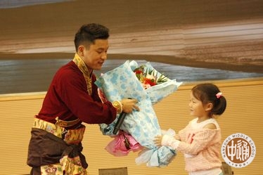 主持词:三年里,每逢文艺节目,我们都能听到那个来自雪域高原的歌声。明天,他们就要回到美丽的故乡了,让我们再听一次嘎玛曲培同学演唱的《故乡》(下图)。