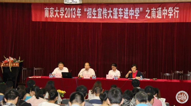 活动由我校教务处主任陈建云主持,本届高三毕业生家长一百余人出席。南大学生工作处处长刘源介绍了近年来的学校办学特色、水平和成就,学生工作处招办主任赵鸣对今年招生政策作了具体说明,南大物理学院党委副书记鞠艳针对以往各中学优秀毕业生普遍关注的问题作了解答。