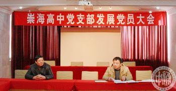 2月23日上午,崇海高中党支部召开党员发展大会。大会由党支部书记吴建主持。 发展对象於锡龄、葛学军、张晓红三位老师宣读了入党志愿书,汇报了他们对党的认识、入党动机和本人的成长履历,表达了加入共产党组织的坚定决心。 |