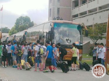 当天上午8时整,18个班的800余名新生分乘19辆车从学校出发(上图),10:00左右车队抵达基地(下图)。班主任与教官交接名单后,全体新生即按班级顺序依次编为第1-18中队。